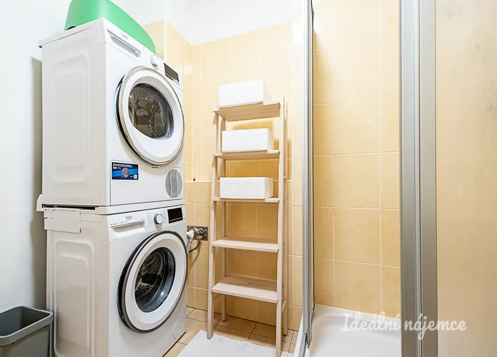 Byt je kompletně vybavený – stačí si přinést osobní věci a můžete ihned bydlet. Kuchyňský kout je vybaven lednicí s mrazákem, varnou deskou, mikrovlnnou troubou, digestoří, kávovarem a rychlovarnou konvicí.