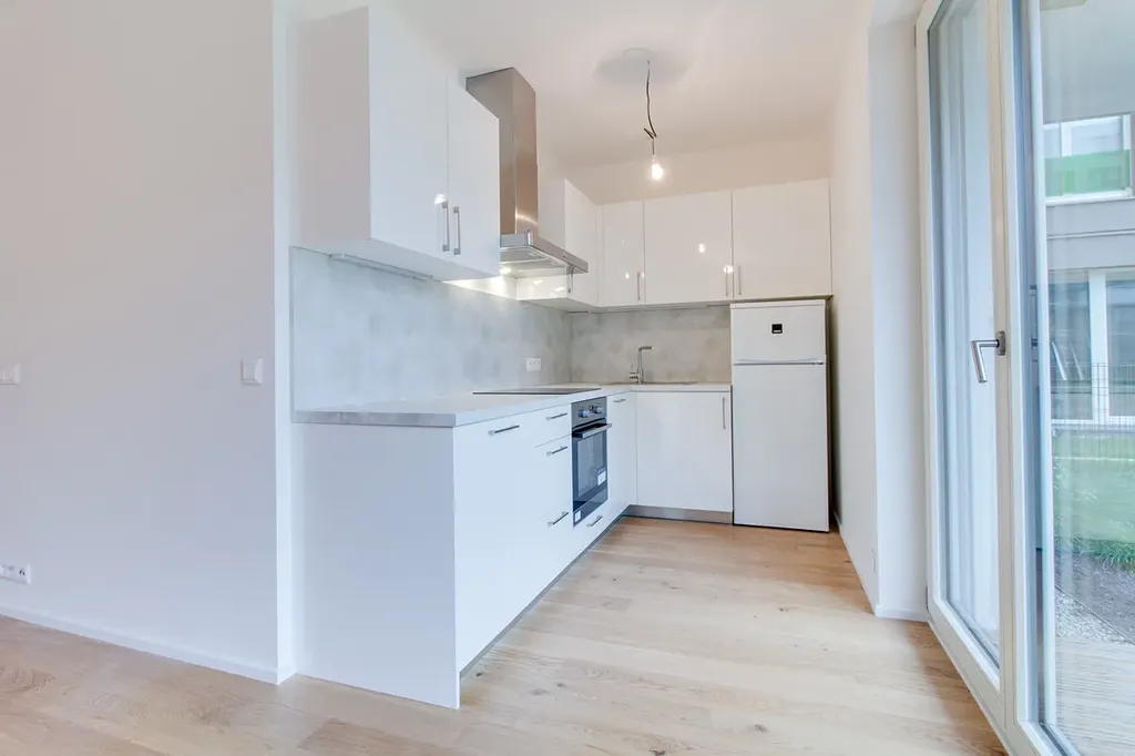 Byt 2+kk o celkové výměře 54,2 m2 se nachází ve 1. NP novostavby a náleží k němu předzahrádka, sklep. Jednotka disponuje prostorným obývacím pokojem, vybaveným novou vestavěnou kuchyňskou linkou včetně kvalitních spotřebičů. Koupelna má sprchový kout a je spojená s WC, pračka.