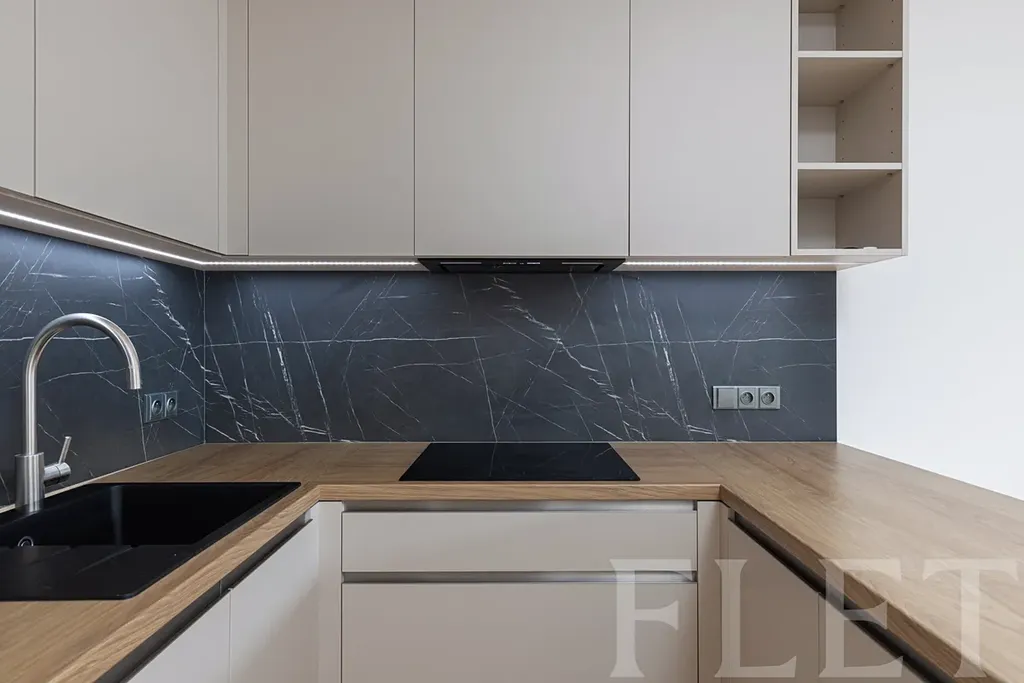 Dominantou bytu je vzdušný obývací pokoj s kuchyňským koutem a vstupem na terasu, která je přístupná také z ložnice. Díky tomu nabízí příjemné propojení interiéru s venkovním prostorem a klidné místo pro ranní kávu či večerní relax. Elegantní kuchyňská linka nabízí velké množství úložného prostoru a je plně vybavena moderními spotřebiči. V chodbě se nachází praktická a designově řešená vestavěná skříň. Byt dále disponuje samostatnou technickou místností s pračkou, která zajišťuje další úložný prostor a komfort v každodenním provozu. Koupelna je provedena v moderním stylu a podtrhuje celkový nadčasový charakter bytu.