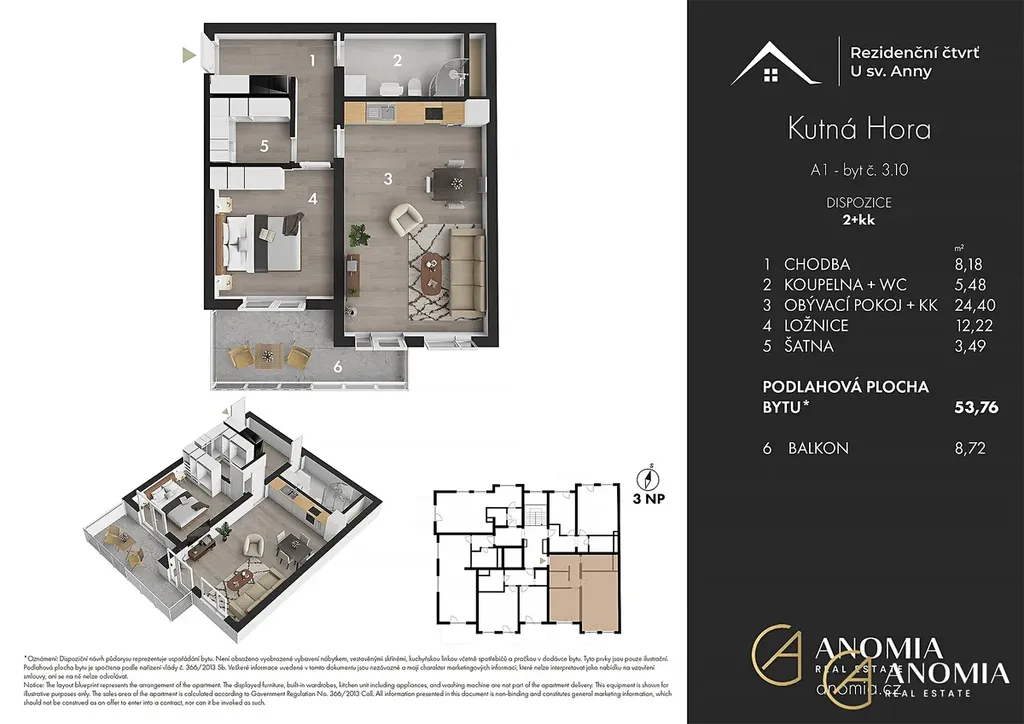 Bytová jednotka s projektovým označením 03.10 o dispozici 2+KK se nachází ve 3. nadzemním podlaží bytového domu BD_A1. Dům bude postaven jako energeticky úsporný s důrazem na použití kvalitních materiálů, které zajistí vysoký standard bydlení. Součástí je také zvuková izolace, která poskytne maximální pocit soukromí a klidu pro všechny obyvatele.