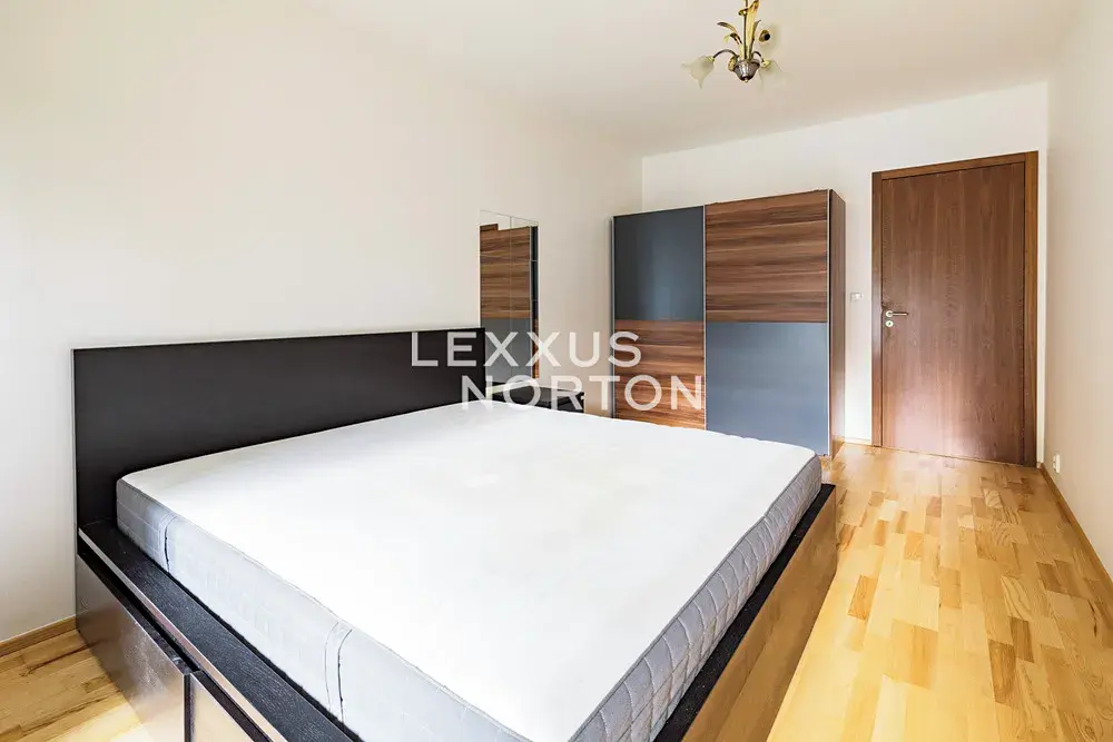 Byt nabízí obývací pokoj s kompletně vybaveným kuchyňským koutem, ložnici, koupelnu s toaletou a jižně orientovanou lodžii se vstupem z obou pokojů. Součástí pronájmu je také parkovací stání. Novostavba se nachází nedaleko centra města a byla navržena s důrazem na harmonii s okolním prostředím podle principů Feng Shui. Celý rezidenční komplex tvoří čtyři bytové domy s kamerovým systémem v rámci areálu a 24 hodinovou centrální recepcí, která zajišťuje komfort i bezpečí obyvatel.