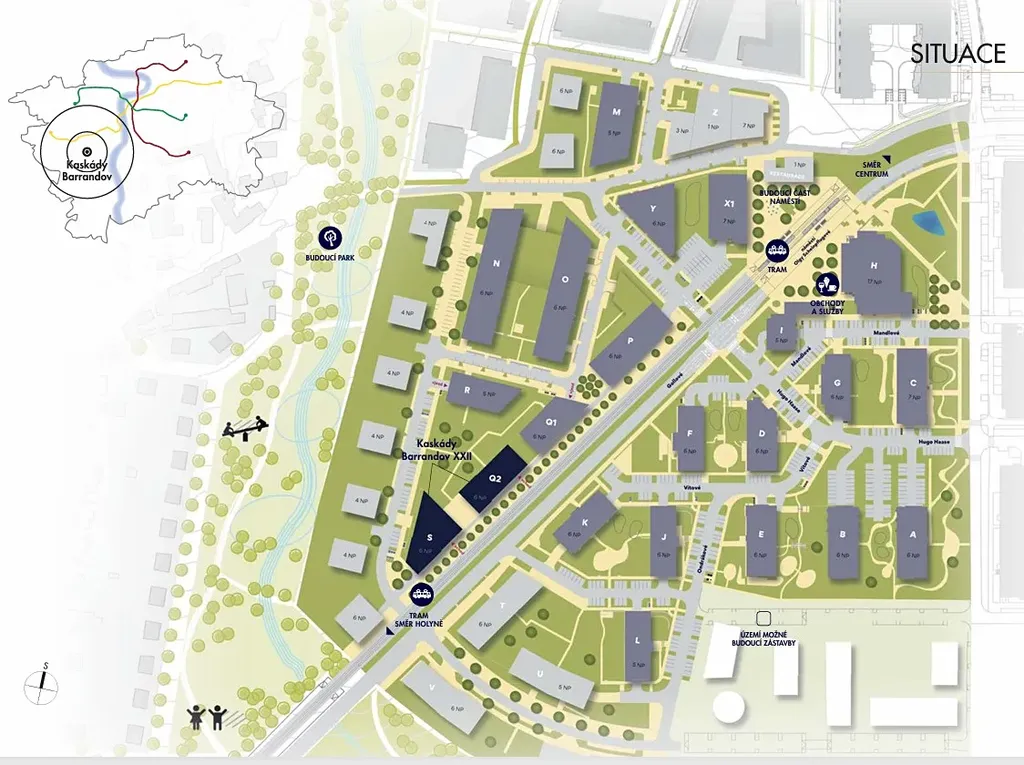 Nabízíme k prodeji byt o dispozici 4+kk v osobním vlastnictví vlastnictví v developerském projektu od Kaskády Barrandov od společnosti Finep. Užitná plocha bytu je 110 m2 + lodžie 9,2m2 a rozlehlá terasa 56,2m2. Byt se nachází ve 1 patře domu S a má orientaci na západ a sever. K bytu je možné za příplatek dokoupit 2x garážové stání a prostornou komoru 6,8 m2 Byt bude dokončen v druhé polovině roku 2027. Na byt bude poskytnuta záruka 3 roky. Klientské změny jsou stále možné. Skvělá investiční příležitost. Prodej probíhá formou postoupení smlouvy o budoucí smlouvě kupní u developera. Nyní hradíte pouze poplatek za postoupení smlouvy ve výši 4 640 742,- Kč. Doplatek kupní ceny se hradí po kolaudaci v roce 2027 na účet developera