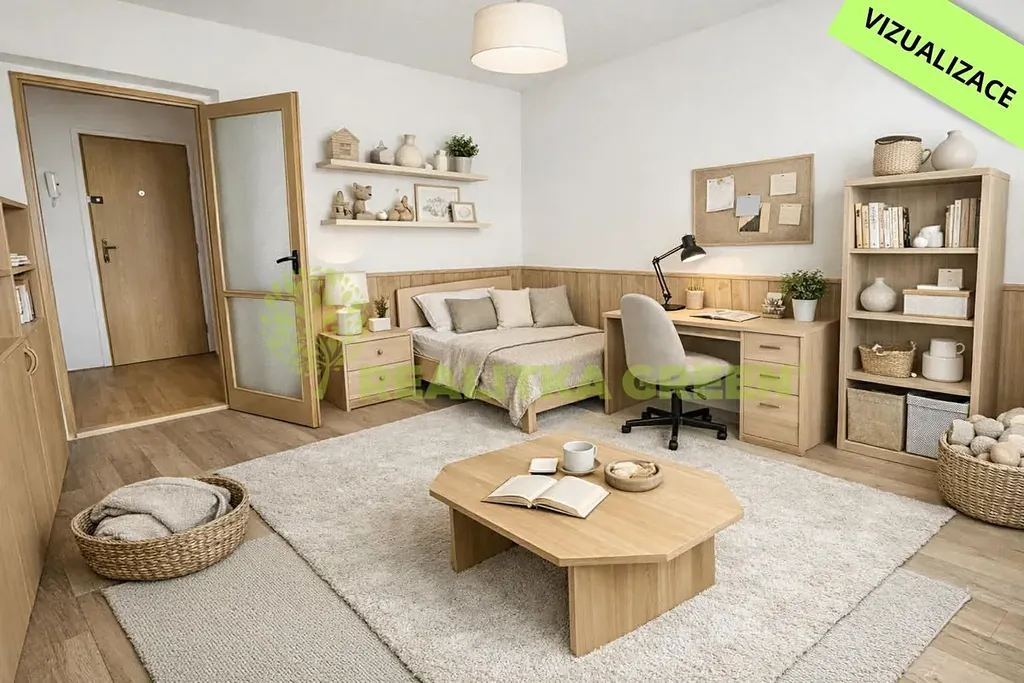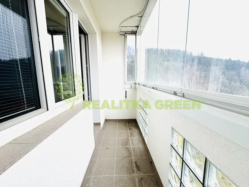 Dispozičně: prostorná vstupní chodba, kuchyň s jídelním koutem, kuchyňská linka s vestavěnými spotřebiči (plynový sporák s elektrickou troubou, myčka), obývací pokoj se vstupem na zasklený balkon, ložnice, pokoj, který lze využít jako dětský pokoj nebo pracovnu, koupelna se sprchovým koutem, samostatné wc.