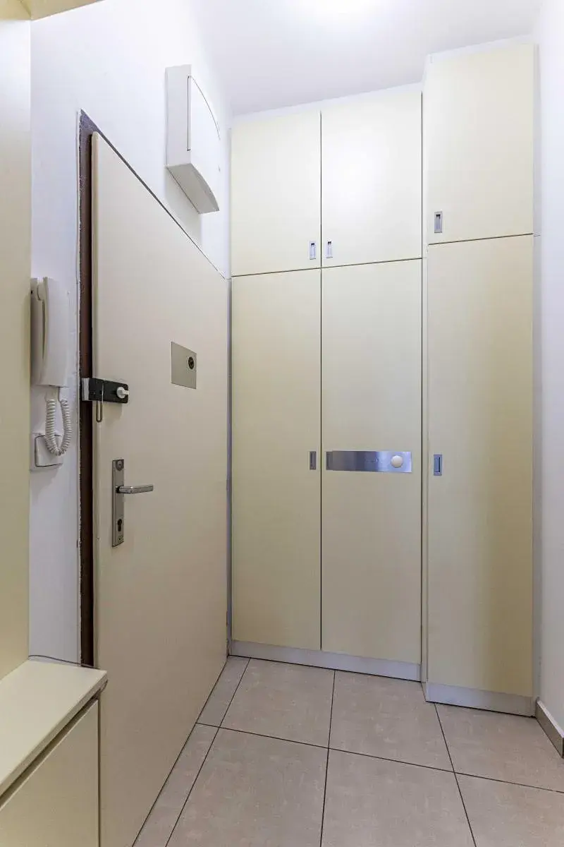 Přestože menších rozměrů, byt má velmi šikovně vyřešené úložné prostory, šatní skříň, botník, police a další úložné prostory ve vstupní chodbě, vestavnou šatní skříň v obývacím pokoji, kuchyň vybavenou běžnými spotřebiči vč. myčky nádobí, lednici s mrazákem. K dispozici je dále jídelní stůl a pračka v koupelně. Stačí tedy pořídit postel/rozkládací pohovku a možná nebudete potřebovat příliš dalšího vybavení.