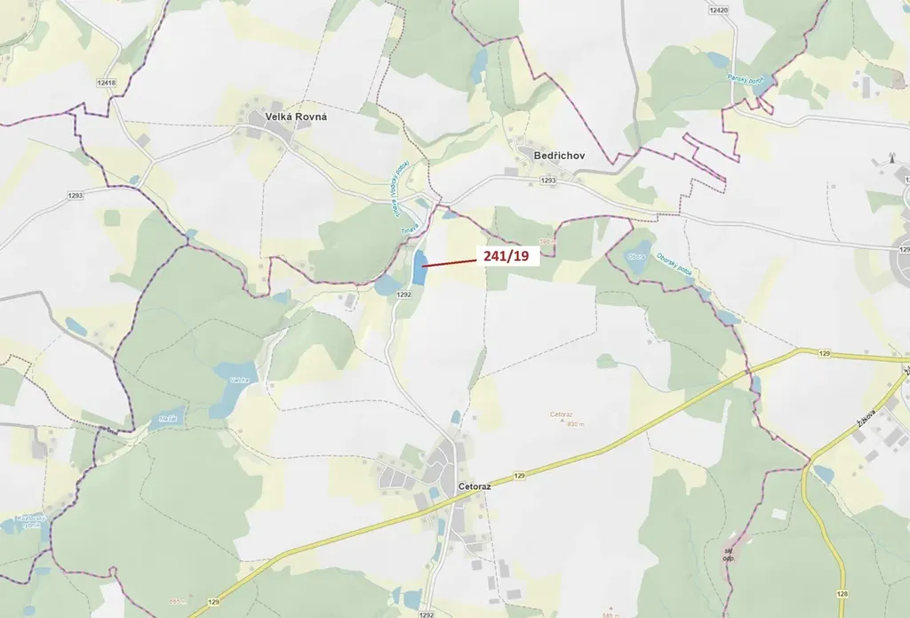 Lesní pozemek o výměře 17 171 m2, parcelní číslo 241/19, podíl 1/1, katastrální území Cetoraz, obec Cetoraz, obec s rozšířenou působností Pacov, okres Pelhřimov, Kraj Vysočina. Po těžbě.