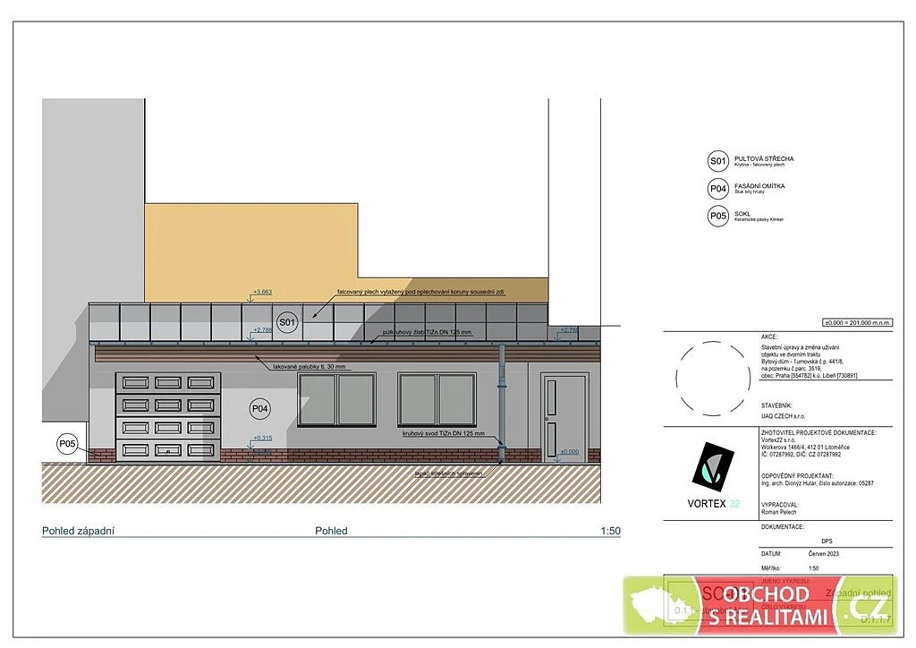 Projektovou dokumentaci a stavební povolení máme k dispozici. Vjezd až k vchodu do objektu je možný skrz dvorní trakt, pouze však pro osobní vozy. Ta část, která se nachází v původní budově prošla kompletní rekonstrukcí, u části vestavěné do dvorního traktu je možné měnit dispozice, ale případně i stavební materiál, protože výstavba bude teprve probíhat. Dle dohody může výstavbu provést stávající nebo nový majitel. Dále se v původní budově, hned vedle nabízených nebytových prostor nachází zrekonstruovaný přízemní byt ( 30 m² ), dispozičně řešený jako 1 +1, který lze s nabízenými prostory propojit nebo může být používán jako samostatná bytová jednotka. Prostory by se tak rozšířily na 143 m². V nabízených nemovitostech byly nově instalovány veškeré inženýrské sítě, včetně elektřiny, vody, a odpadů.