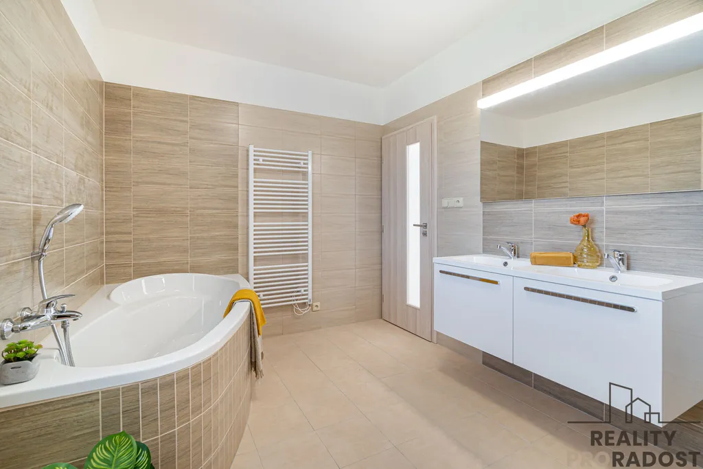 Podlahy jsou vinylové + dlažba. V oknech jsou sítě proti hmyzu.