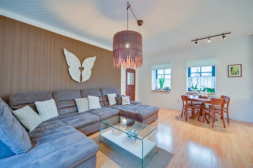 Dům disponuje užitnou plochou 91 m², která zahrnuje prostorný obývací pokoj s kuchyní a pracovnou v přízemí, dětský pokoj v patře, kde je prostor pro vybudování ještě jednoho pokoje. K domu náleží prostorná krytá terasa o rozloze 50 m² a stodola s 78 m². Pozemek s rozlohou 746 m² poskytuje dostatek prostoru pro venkovní aktivity nebo zahradničení.