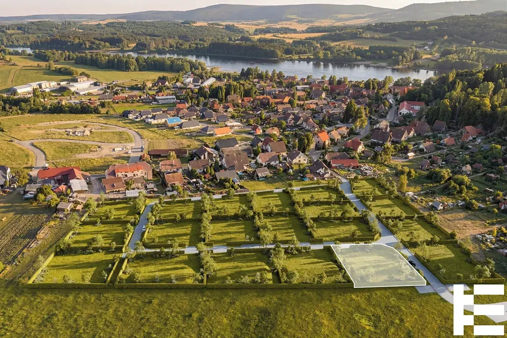 Pozemek se nachází na prosluněném jižním svahu, na samém severním okraji obce a v těsném objetí lesa. Díky přirozené orientaci k jihu vás bude slunce provázet po celý den. Nabízí tak nejen dokonalé soukromí a klid, ale především dechberoucí výhledy na hladinu Lipna i majestátní šumavské kopce.