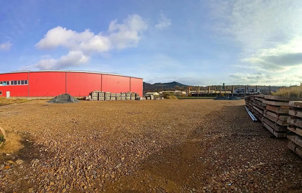 Aktuálně k dispozici venkovní rovinné plochy pro komerční využití ( TIR, Kontejnery, Stavební dvůr, venkovní sklad a pod ). Ing. sítě 220/280V, voda, kanalizace...... Možno k nájmu malá admin. budova, vytvořena ze dvou izolovaných buněk, obsahující zázemí a vodu - barevné foto. Nutno dodělat interiérové úpravy. Na pozemku lze umístit dočasné lehké stavby, plátěné haly, nebo přístřešky.