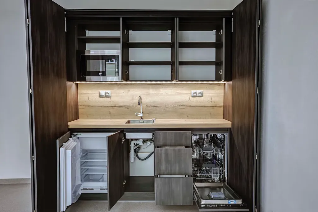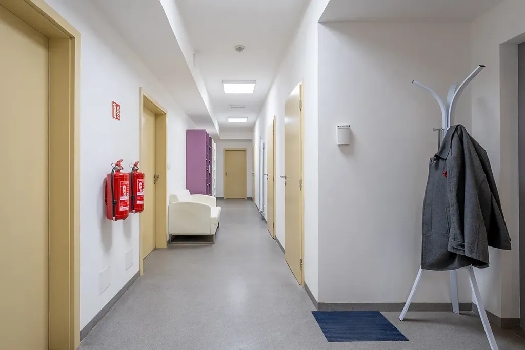 Kanceláře: Jednotky o výměrách 27,1 m², 24,0 m², 28,2 m² a 32,7 m². Všechny kanceláře jsou vybaveny kuchyňskými linkami se spotřebiči a venkovními elektrickými žaluziemi.