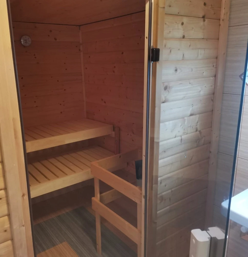 Součástí pozemku je také samostatná nízkoenergetická budova se dvěma místnostmi, koupelnou a vestavěnou saunou – ideální pro hosty, relaxaci nebo krátkodobé ubytování.