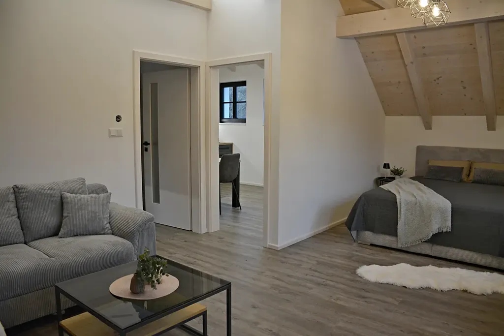 Velkým bonusem je možnost využívat zahradu za domem — ideální pro odpočinek nebo letní posezení.