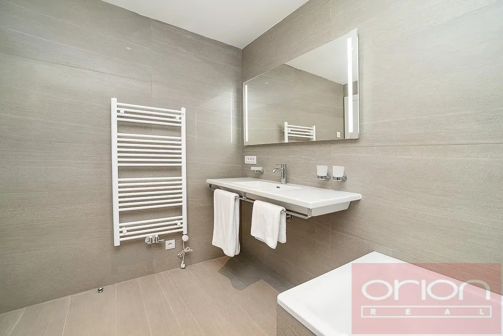 Nabízíme k pronájmu moderní, luxusní byt 1+kk s terasou a zahrádkou ve 2. patře nového bytového domu Ellipsis s recepcí, výtahem, podzemní garáží, wellness centrem a rozlehlou zahradou s parkovou úpravou v v lokalitě Praha 5 - Smíchov s výborným spojením do centra, do nákupního centra Nový Smíchov, do Německé a Francouzské školy. Zařízený byt s celkovou plochou 65,59 m2 nabízí vstupní chodbu, prostorný pokoj s plně vybavenou kuchyní a dvoulůžkem, koupelnu s vanou, sprchou, toaletou, bidetem a samostatnou toaletou. K bytu náleží terasa o velikosti 12,38 m2 a zahrádka o velikosti 51,53 m2. Moderní nábytek, kvalitní materiály, dřevěné podlahy, velkoformátová dlažba, francouzská okna, bezpečnostní dveře, internet, sklep. Možnost nájmu garážové stání za extra poplatek 200 EUR měsíčně + DPH. Oblíbená lokalita Praha 5 - Smíchov s dobrým dopravním spojením, v pěší vzdálenosti na stanici metra a tramvaje Anděl, do parku Petřínské sady. NÁJEMNÉ 1900 EUR+12% DPH se platí v eurech a zahrnuje veškeré poplatky za služby, 2x měsíčně úklid, internet a energie. Členský poplatek za wellness 2.500 Kč/měsíc. V přízemí budovy se rovněž nachází fitness centrum Prisma Institut, které je ideální pro aktivní odpočinek.