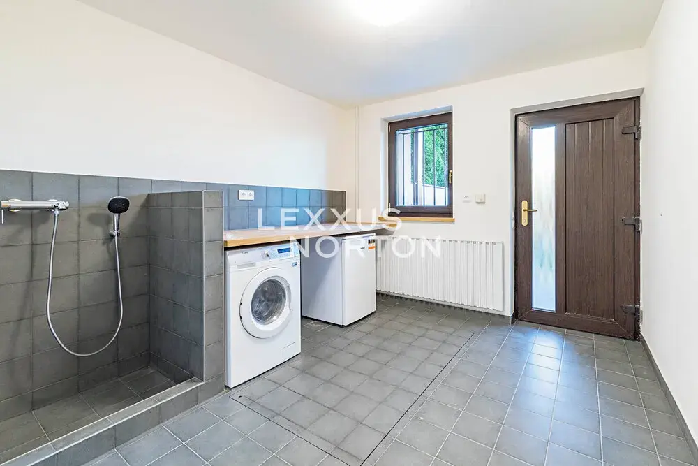 Dům se nabízí nezařízený a k jeho vybavení patří kuchyňské vestavěné spotřebiče, pračka, sušička a klimatizace.