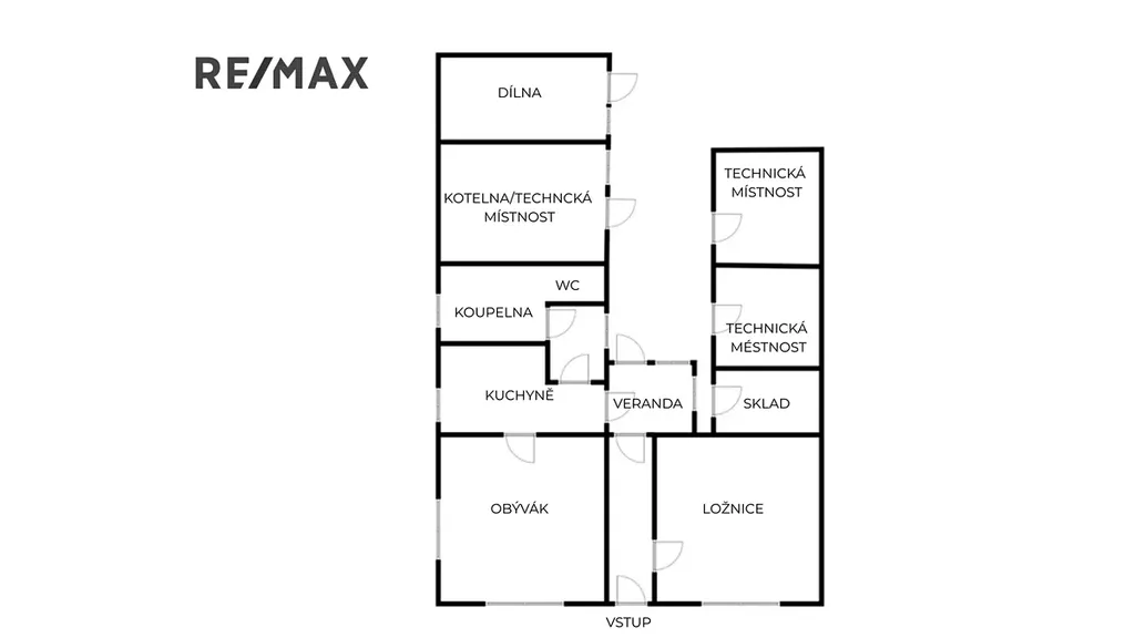 Dispozici domu tvoří vstupní chodba o velikosti 7,8 m², ze které se vstupuje do ložnice o výměře 25 m². Přes verandu o ploše 7,7 m² se dostaneme do kuchyně o velikosti 12,2 m², z níž je vstup do obývacího pokoje s výměrou 24 m². Z kuchyně vede také menší chodba (5 m²) do koupelny s WC o velikosti 6 m². Dům je suchý, je připraven na finální fasádu a nabízí možnost půdní vestavby i rozšíření obytné části do technických místností.