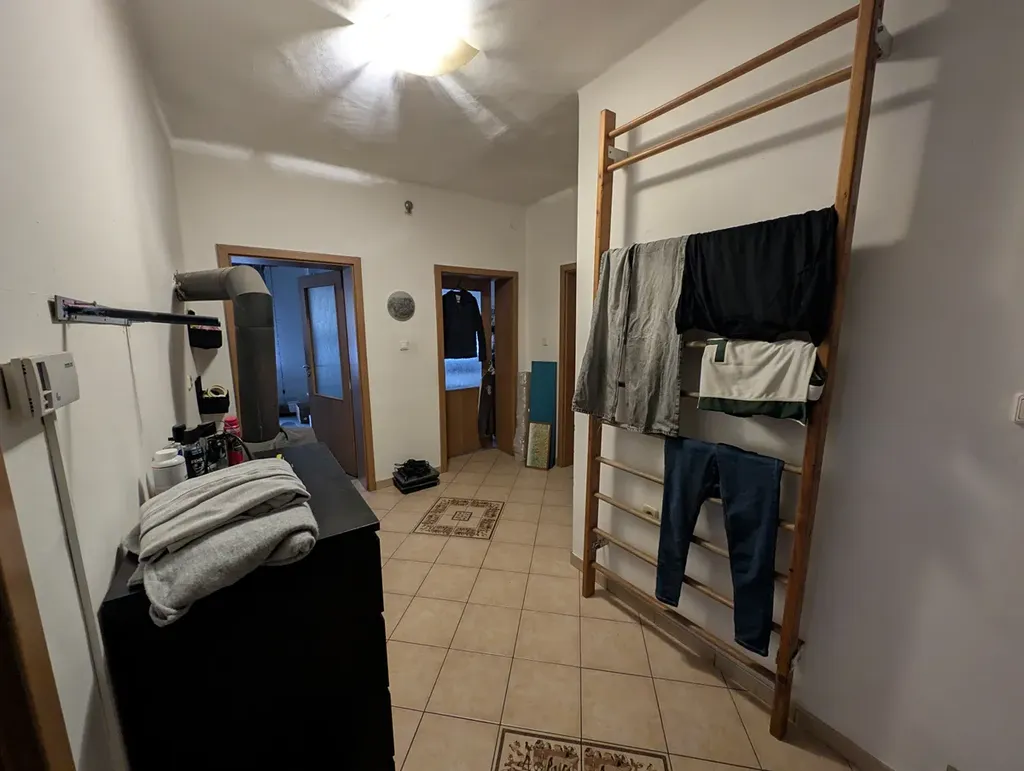 skládá se: zádveří, obývací pokoj 16 m², chodba, komora, dětský pokoj 17 m², pokoj 6 m², kuchyně 11 m², koupena a samostatné toalety. K jednotce náleží garáž a sklep, z komory je vstup do sklepa a garáže. Jednotka prošla rekonstrukcí v roce 2011, od té doby v obývaném stavu.