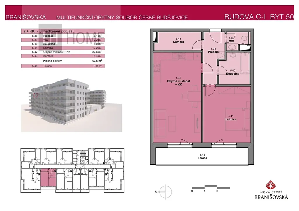 V projektu Nová čtvrť Branišovská v Českých Budějovicích nabízíme k prodeji moderní byt 2+kk o podlahové ploše 67,5 m² s balkonem o velikosti 9,9 m².