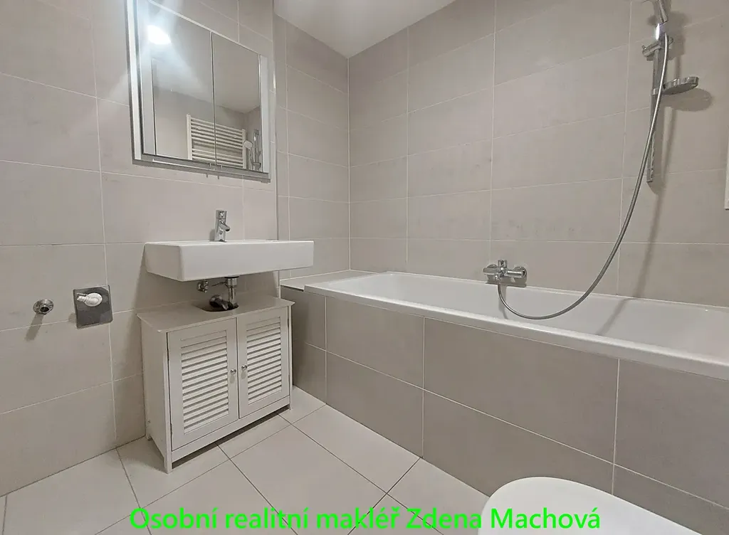 Byt je celoprosklený s velkoformátovými okny a přímým vstupem na terasu z obytné části i kuchyňského koutu. Orientace do klidné ulice zajišťuje dostatek světla i soukromí. Koupelna je vybavena vanou a toaletou.