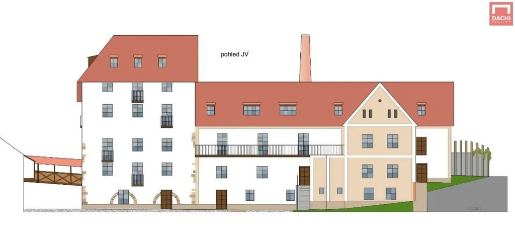 Nabízíme k prodeji rozsáhlý historický areál bývalého parního mlýna v obci Královice u Zlonic, vzdálené přibližně 30 km od Prahy, s velmi dobrou dostupností na dálnice D7 a D8.