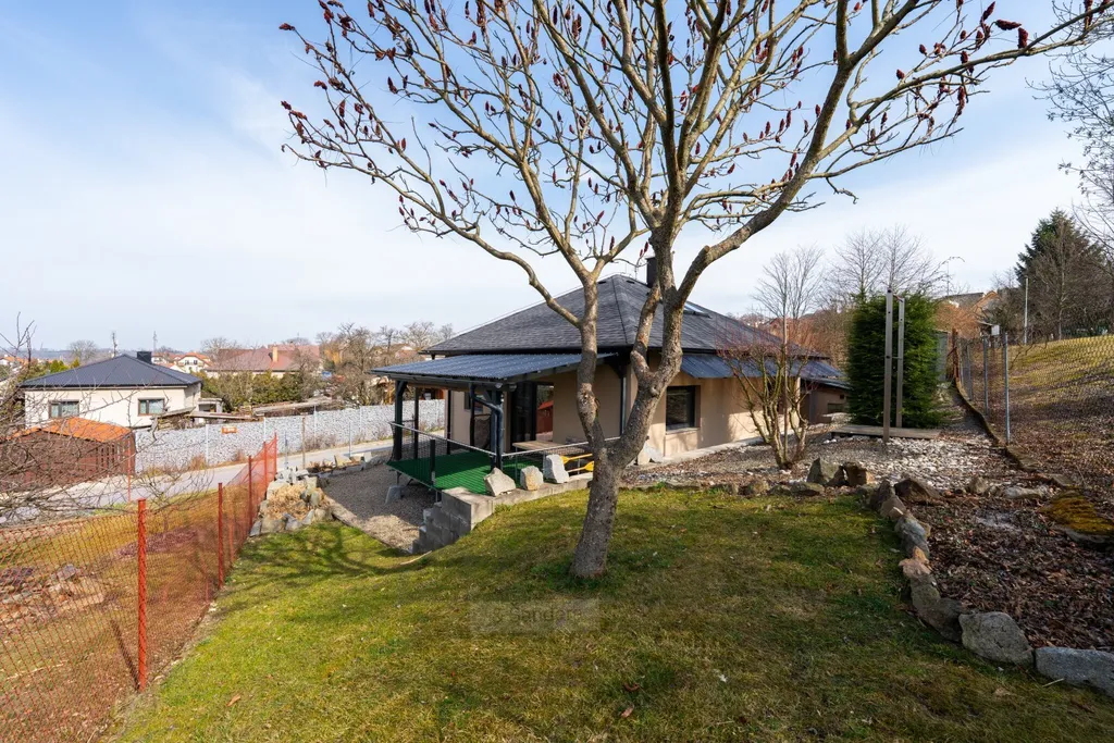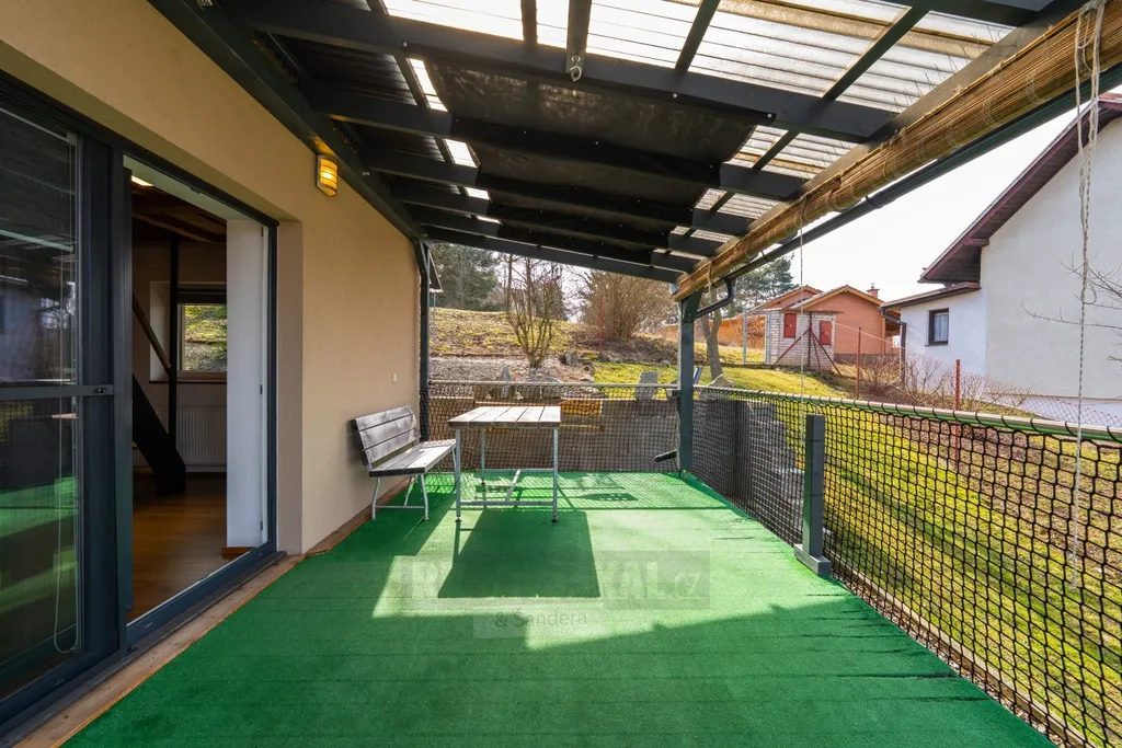 Novější, menší rodinný dům v členění prostorné 4+1 ve dvou podlažích s příslušenstvím, dům s oploceným pozemkem, s parkovacím nádvořím se zahradním domkem a zastřešenou terasou.