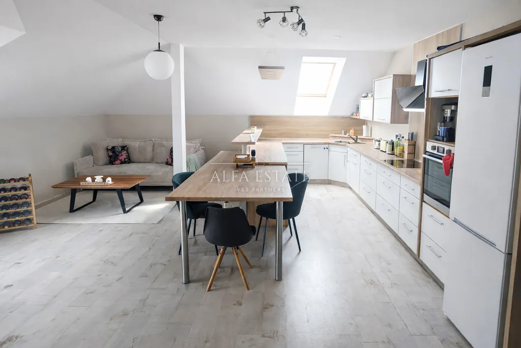 Představujeme Vám výjimečnou bytovou jednotku o dispozici 4+kk a celkové ploše 120 m², situovanou ve 4.nadzemním podlaží moderního cihlového domu – novostavby v klidné a vyhledávané části města Chodov.Tento byt zaujme především velkorysým prostorem, nadstandardní světlostí a perfektním technickým stavem. Nemovitost je připravena k okamžitému užívání bez nutnosti jakýchkoliv dalších investic a nabízí komfortní bydlení pro náročnější klientelu.Srdcem bytu je reprezentativní obývací prostor plynule propojený s kuchyňskou částí.Kuchyňská linka byla zhotovena na míru s důrazem na funkčnost, dostatek úložného prostoru a čistý moderní design.Celek působí vzdušně a elegantně a poskytuje ideální zázemí pro každodenní život i společenská setkání.Dispozice bytu zahrnuje vstupní předsíň s vestavěnou skříní vyrobenou na zakázku, tři samostatné ložnice, koupelnu s rohovou vanou a prostorný obývací pokoj s kuchyňským koutem.O maximální komfort bydlení se stará vlastní nový plynový kondenzační kotel, který zajišťuje jak vytápění, tak ohřev vody — tedy plnou nezávislost na centrálních zdrojích a efektivní provozní náklady. Výjimečnou atmosféru bytu podtrhuje nadstandardní množství přirozeného světla. Velká okna doplněná o další středová okna opticky zvětšují prostor a vytvářejí příjemné, vzdušné prostředí po celý den. Všechna okna jsou vybavena žaluziemi pro dokonalou regulaci světla i soukromí.K bytu náleží prostorný sklep o velikosti 13 m², který poskytuje komfortní zázemí pro uskladnění sezónních věcí, sportovního vybavení či rodinného archivu.Dům se nachází v klidné rezidenční lokalitě s kompletní občanskou vybaveností v docházkové vzdálenosti. Okolí nabízí ideální kombinaci pohodového rodinného bydlení a dobré dopravní dostupnosti.