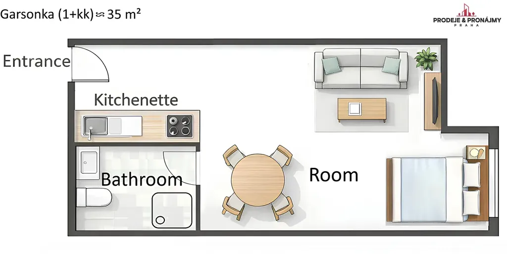 jednotka C) garsonka cca 35 m²