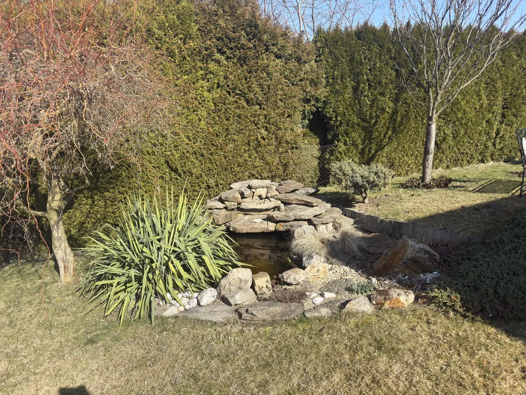 K domu náleží pozemek o celkové výměře přibližně 1 338 m², který poskytuje dostatek prostoru pro odpočinek i dostatečné soukromí. Na zahradě se nachází bazén a okrasné jezírko, které dotváří příjemnou atmosféru celého místa.