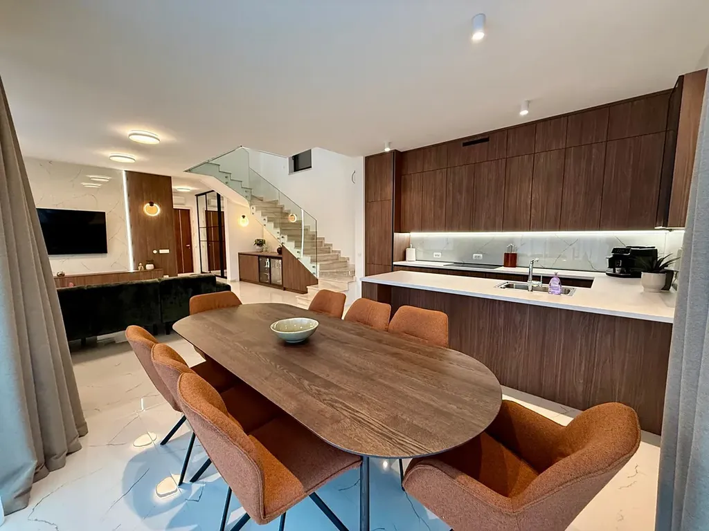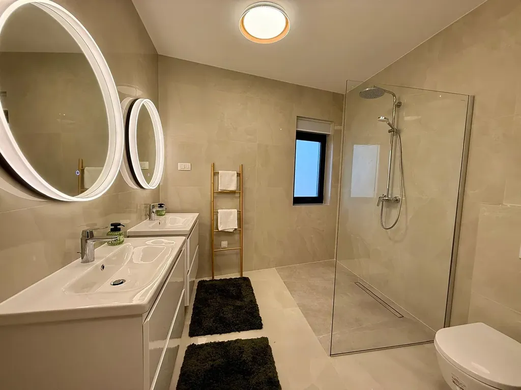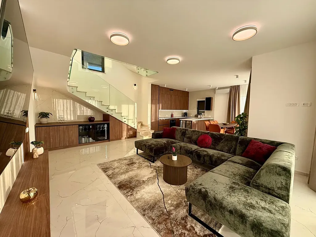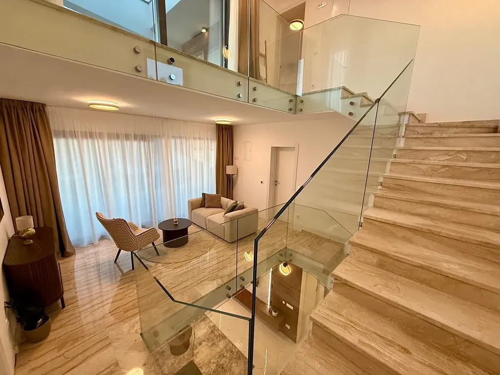 Mimořádná vila ve tvaru „diamantu“ se nachází v oblasti Rogoznica. Leží pouhých 100 metrů od moře a z každého patra nabízí úchvatný výhled na Jadran. Vila je umístěna na místě, kde se dvě místní cesty spojují do slepé ulice, což zajišťuje snadnou dostupnost a zároveň luxusní bydlení s naprostým soukromím.