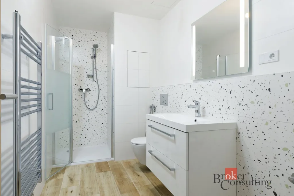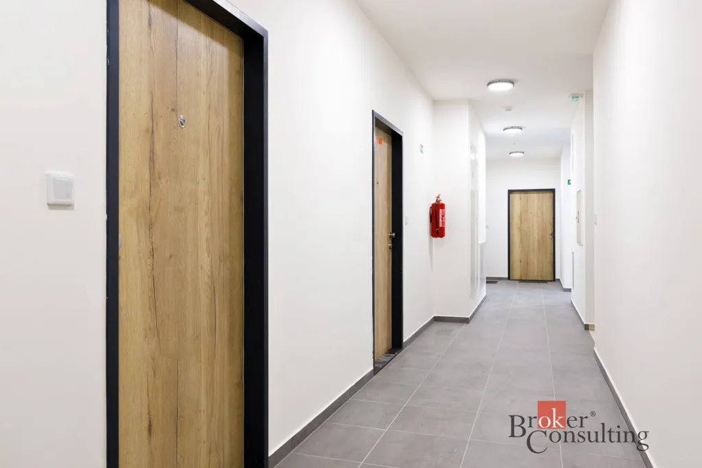Byt je prakticky řešený a působí velmi příjemným a světlým dojmem. Dispozici tvoří vstupní chodba, koupelna se sprchovým koutem a toaletou, ložnice se vstupem na balkon a obývací pokoj s kuchyňským koutem, ze kterého je vstup na lodžii. Dva venkovní prostory poskytují ideální místo pro ranní kávu, odpočinek nebo posezení na čerstvém vzduchu.