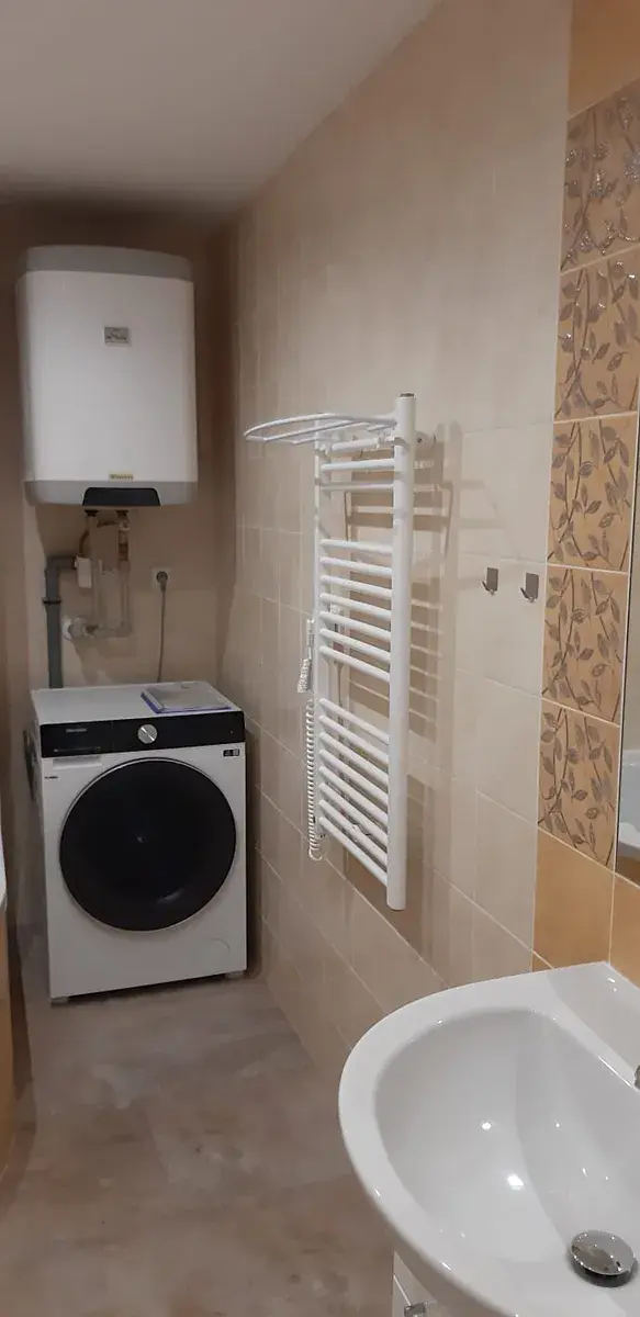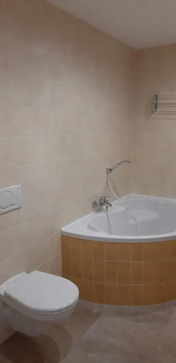 Byt má vlastní elektrické podlahové topení a bojler na ohřev vody.