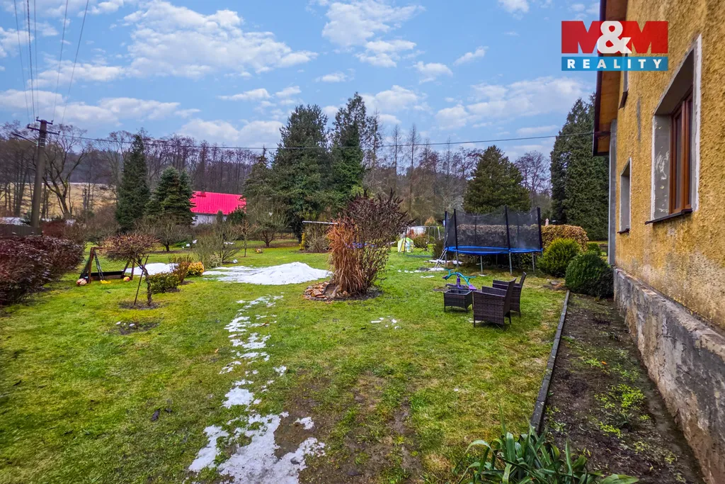 Na pozemku se nachází stodola, zahradní domek, pergola, ohniště pro večerní posezení a vzrostlé okrasné i ovocné stromy a keře které vytvářejí příjemné zázemí pro odpočinek i zahradničení. Celý prostor je živý a plný zeleně.