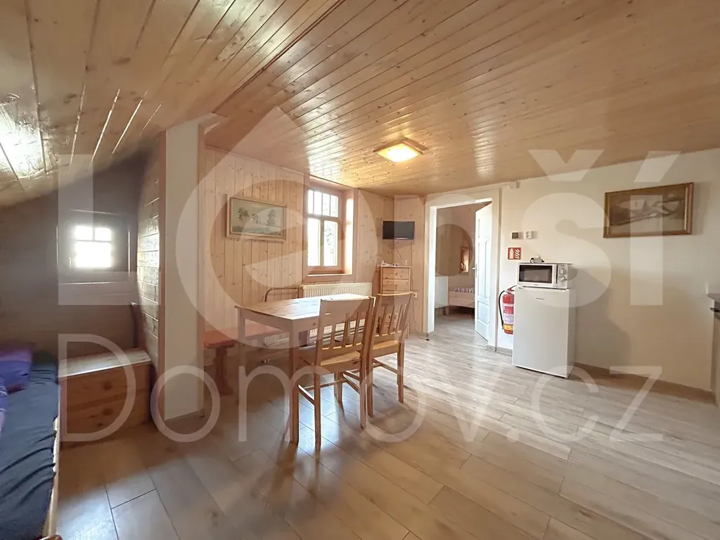 Nabízíme Vám k prodeji zavedený penzion v malebném obci Rejvíz s pozemky o celkové výměře 1021 m2 . Zastavěná plocha penzionu činí 172 m2, na pozemku se nachází parkoviště před penzion, zahrada s posezením a grilem, úschovna kol a lyží s elektronabíječkou. V Penzionu se nachází 6 samostatných apartmánů s celkovou kapacitou 27 lůžek. Všechny apartmány jsou vybaveny sociálním zařízením, kuchyňskou linkou, rychlovarnou konvicí, mikrovlnou troubou, indukčním vařičem a lednicí, připojení na Wifi a TV se satelitem. Dispoziční uspořádaní : Objekt je částečně podsklepen nachází se zde technická místnost ve které je umístěn plynový kotel a zázemí pro tepelné čerpadlo, darling . V přízemí se nachází celkem 3 apartmány , šesti lůžkový a 2x čtyřlůžkový apartmán, v podkroví se pak nachází menší dvoulůžkový apartmán, největší osmi lůžkový apartmán a čtyřlůžkový apartmán. Do Penzionu je přístup ze 3 samostatných vstupů, každý je ke dvěma apartmánům. Celý objekt je zkolaudován jako ubytovací zařízení a prodává se plně vybavený včetně domény a aktuálních rezervacích na sezónu . Vytápění objektu je řešeno tepelným čerpadlem jako záložní zdroj pak slouží elektrokotel o výkonu 24 kw, odpad je sveden z jímky do obecní kanalizace. Objekt je připojen na elektro a obecní vodovod. Nádherná oblast Rejvízu je hojně vyhledávána turisty, v okolí se nachází cyklostezky, běžecké trasy a nedaleko také lyžařské areály. Známé je také Velké a Malé Mechové jezírko. Veškerá občanská vybavenost je ve městě Zlaté Hory a lázeňském městě Jeseník . Makléř doporučuje osobní prohlídku