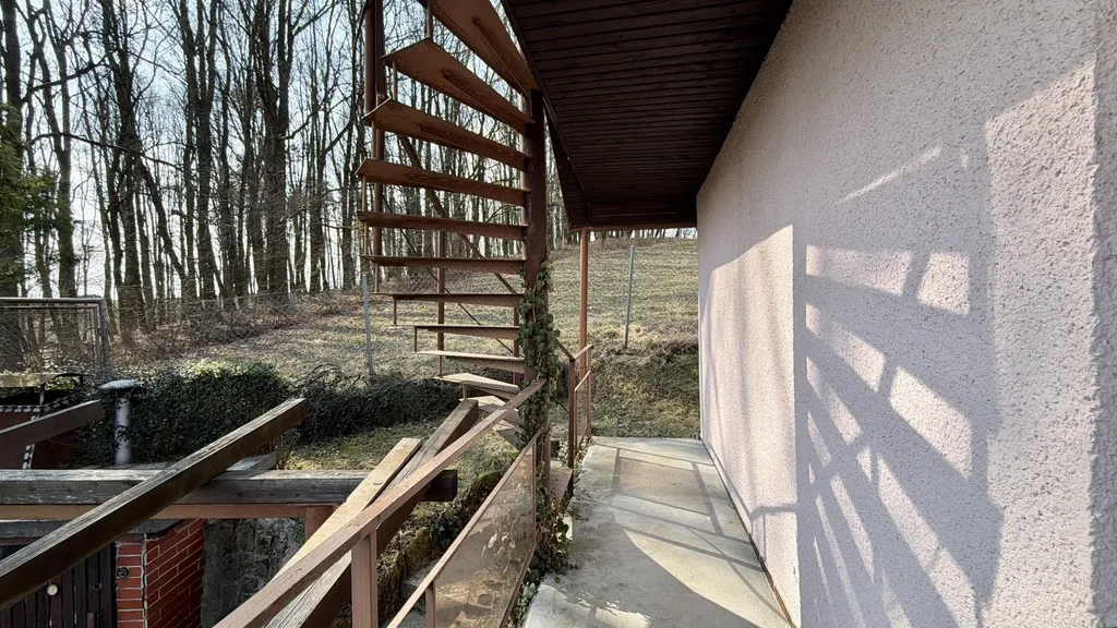• 1. patro: Hlavní obytná část s kamny, kuchyňským koutem (připraven k realizaci dle vašich představ) a vstupem na prostorný balkon.