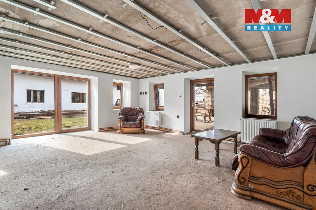První dům je určen k rekonstrukci, aktuálně o dispozici 3+1, s navazujícím chlévem a stodolou vhodnou jako dílna, sklad či zázemí pro podnikání. Druhý dům již prošel rekonstrukcí, má novou střechu, rozvody elektřiny a topení a nabízí možnost téměř okamžitého bydlení. Součástí je také velká zastřešená terasa s potenciálem zimní zahrady.