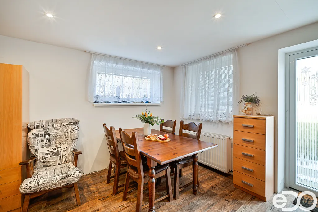 Součástí je také komora, přes kterou je možné vejít do veliké garáže, která má cca 70 m2 a je vhodná nejen pro parkování, ale i pro dílnu nebo podnikání. V případě potřeby dalšího prostoru je možné využít i velké půdní prostory.