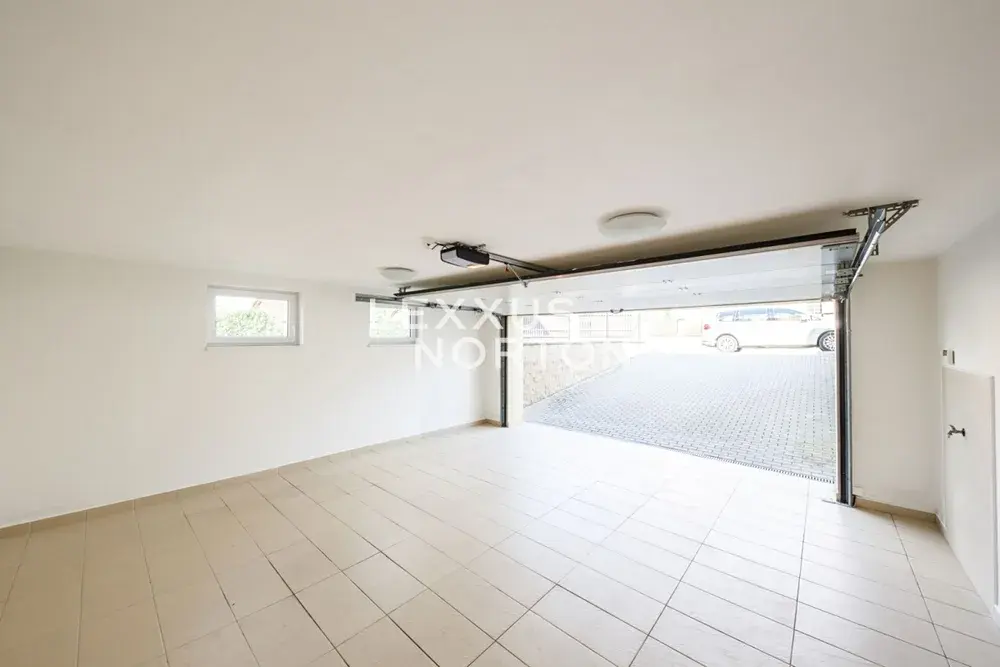 V přízemí domu se nachází vstupní hala, obývací pokoj s krbem a kuchyňským koutem, odkud je přímý vstup na terasu a do zahrady. Dále je zde prostorná ložnice a koupelna. V horním patře jsou čtyři ložnice, dva společné balkony a dvě koupelny. V suterénu je umístěna prádelna, kotelna, herna / fitness, úložné prostory a vstup do garáže. Garáž pro dva automobily.