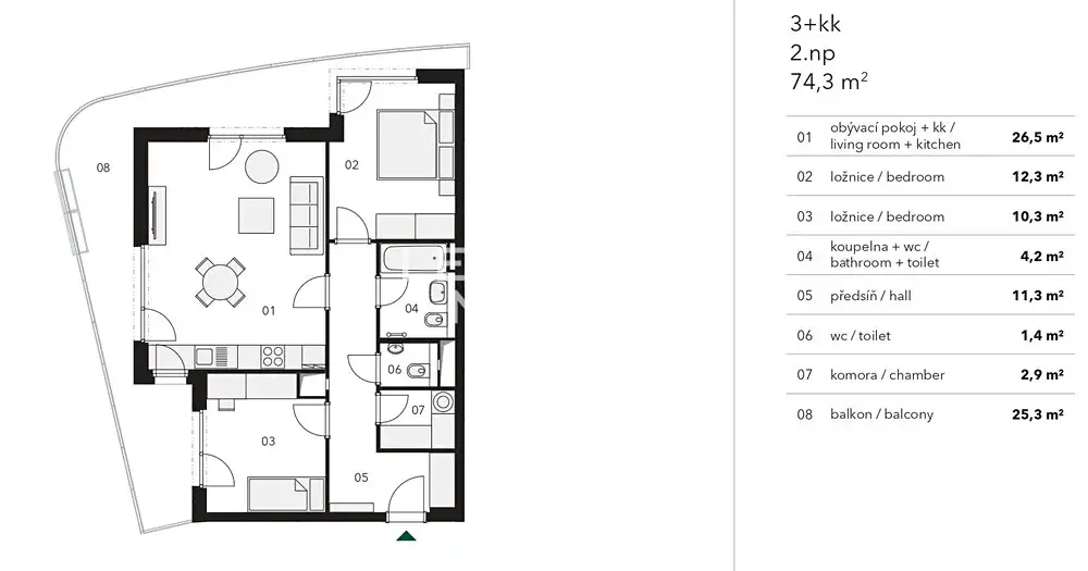 | Užitná plocha | 74 m2 |