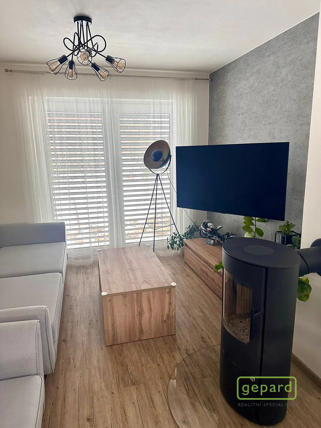 Dům je zděný z cihel Heluz 35 cm a kvalitně zateplený 20 cm vrstvou polystyrenu, střecha sedlová s plechovou střešní krytinou. Přes celý dům je k dispozici pochozí půda, kde máte možnost uskladnit nejen sezónní záležitosti. Na jižní stranu domu jsou situována v každé místnosti velká francouzská okna, která vám zaručí po celý den dostatečný příjem světla a nechybí předokenní žaluzie na dálkové ovládání, které vám zajistí soukromí a jistě je oceníte i v letních měsících. V celém domě je kvalitní vinylová podlaha, dveře a zárubně značka Sapeli. Dům disponuje 2 koupelnami, kdy v jedné je k dispozici vana a topný žebřík, ve druhé koupelně pak sprchový kout a toaleta, které jsou oddělené skleněnou stěnou. Druhá samostatná toaleta je hned vedle pokoje. V obývacím pokoji nechybí krbová kamna na dřevo/brikety bez výměníku, která zpříjemní dlouhé zimní večery. Na obývací pokoj navazuje kuchyňská část, která disponuje prostornou kuchyňskou linkou do tvaru U s vestavěnými spotřebiči značky Bosch a Gorenje (varná deska, digestoř, myčka, mikrovlnná trouba, pečící trouba) a volně stojící lednice s mrazákem.