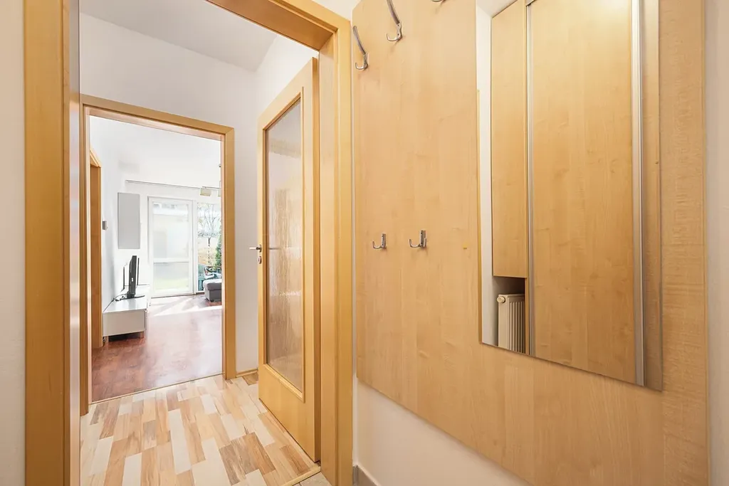 K dlouhodobému pronájmu nabízíme skvělý dvoupokojový byt s kuchyňským koutem, vlastní udržovanou zahrádkou a krytým parkovacím stáním.