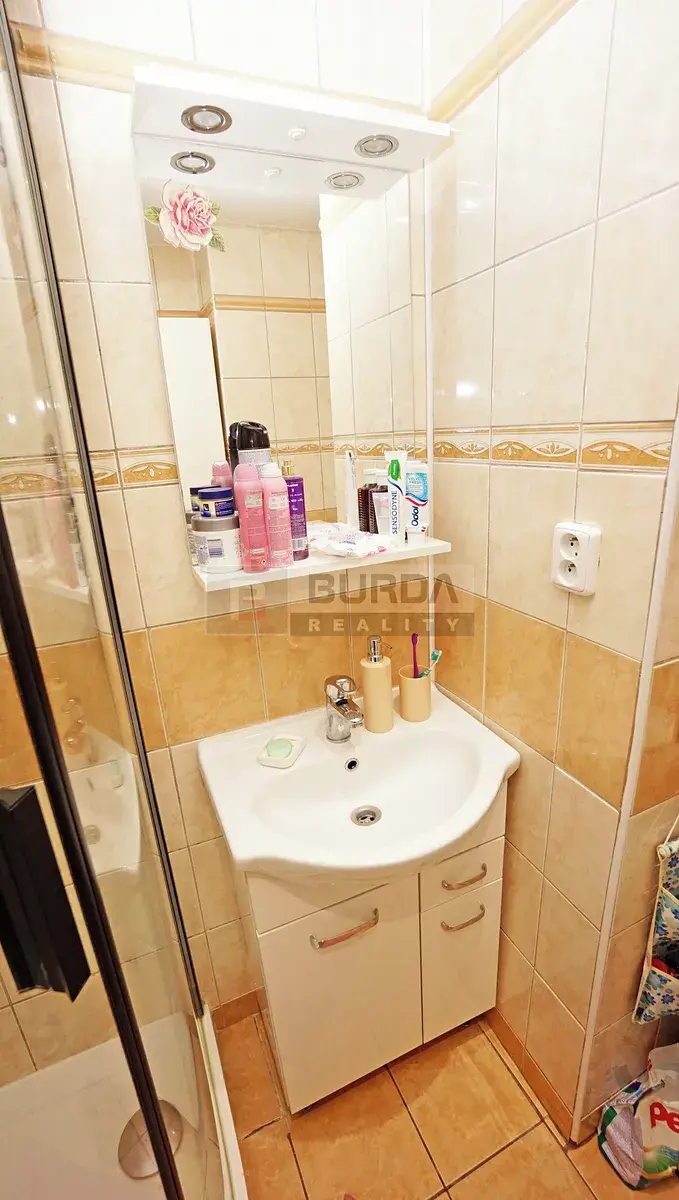 Byt byl v roce 2021 kompletně zrekonstruován, bytové jádro bylo nově vyzděno z cihel Ytong, koupelna byla vybavena sprchovým koutem ze Sapho Líbeznice, umyvadlem se skříňkou a zrcadlem a přípojkami pro pračku (pračka nezůstane). V koupelně a na WC je sádrokartonový podhled. Podlahu v koupelně a na WC pokrývá dlažba.