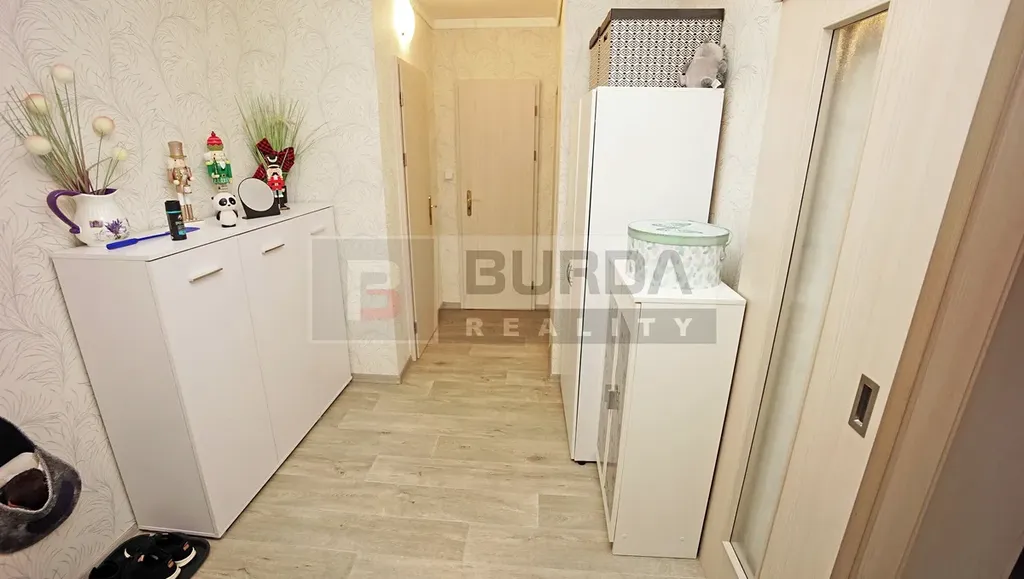 Celková plocha bytu je 72,24 m2. Čistá plocha bytu je 66,69 m2 + lodžie + sklep + vnější komora na chodbě.