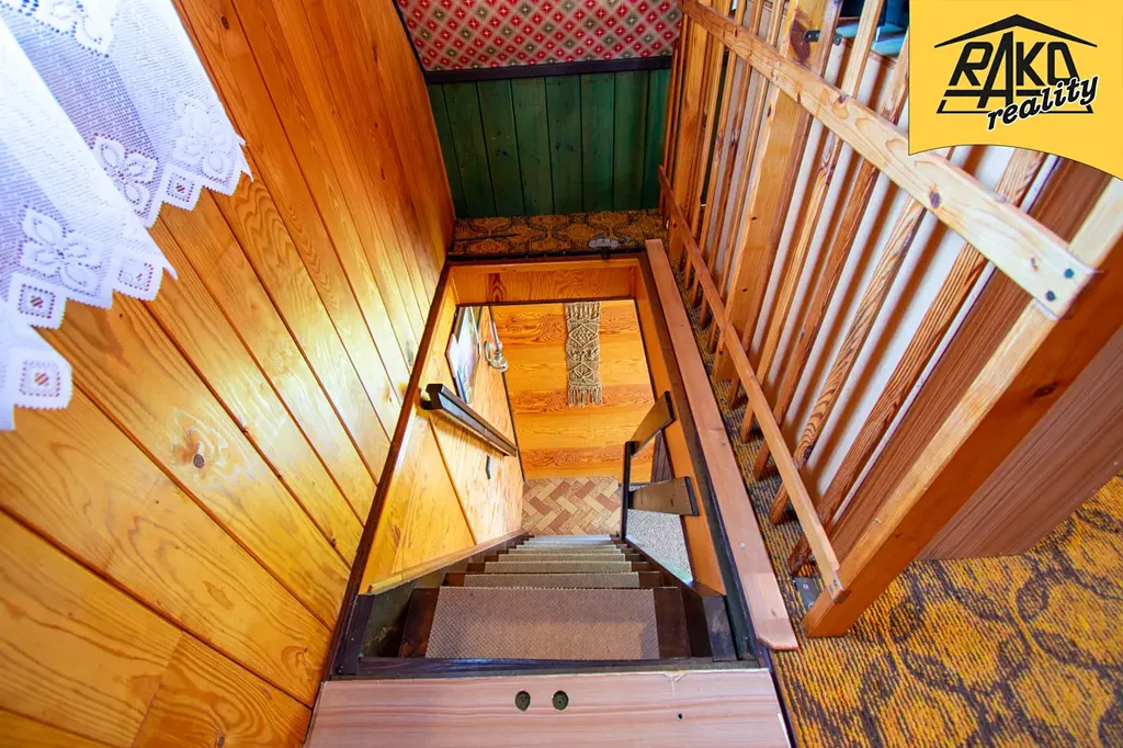 Dispozice: sklípek (5m2), veranda s posezením (4,8m2) a nádherným výhledem na Trutnov, obývací prostor (14m2), schody do podkroví, kde je prostor na spaní (13m2). Na chatu navazuje dřevěný přístřešek – pergola s posezením. Před ním je prostor na umístění například menšího bazénu.