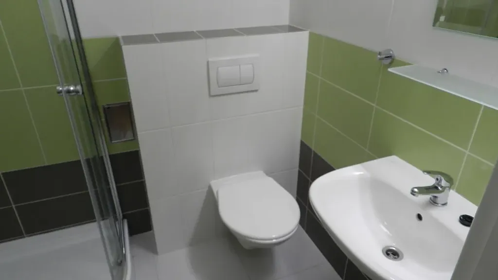 Ze vstupní haly je vstup do koupelny se sprchovým koutem a WC.