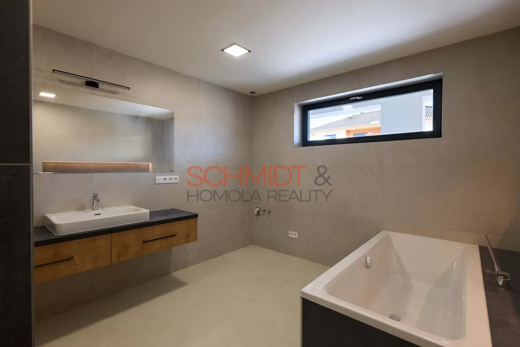 Jedná se o velice hezký bungalov s dispozicí 5kk, garáží, terasou a pozemkem o celkové výměře 748 m². Dům kolaudovaný v roce 2025 nabízí tři ložnice, pracovnu se samostatným vstupem, prostorný obývací pokoj s přípravou pro kuchyňskou linku, koupelnu ve které je k dispozici jak vana, tak bezvaničkový sprchový kout, dvě samostatné wc, technickou místnost a již zmíněnou garáž.