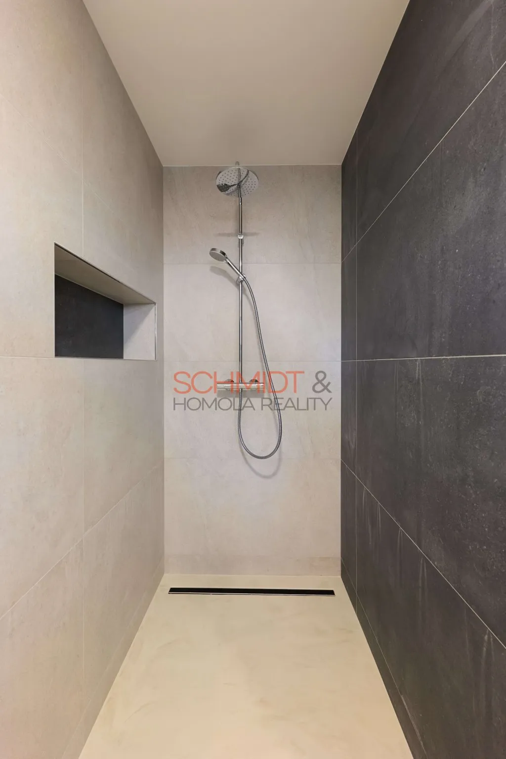 Nášlapnou vrstvu podlah v celém domě tvoří designová stěrka, v koupelně a na wc v kombinaci s velkoformátovými obklady. Kolem domu byla použita kvalitní, taktéž velkoformátová dlažba.