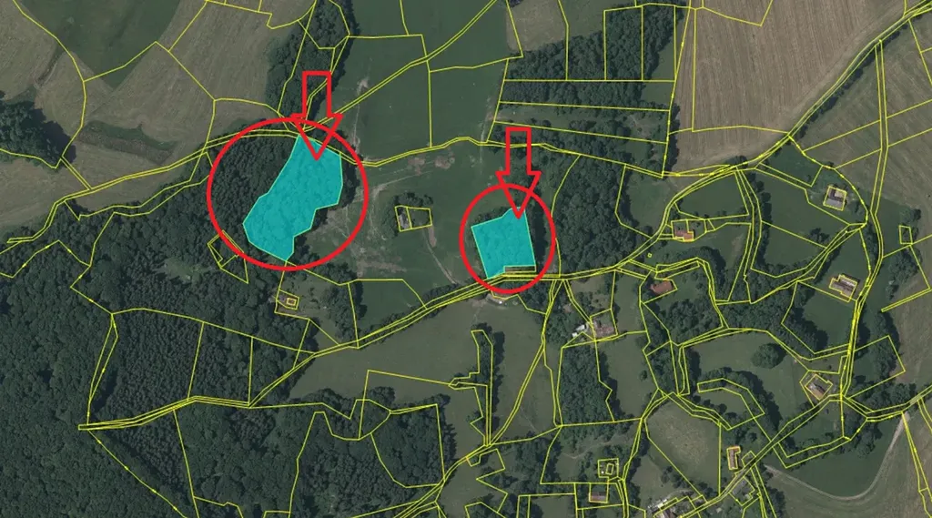 - p.č. 1404/1 vedená jako lesní pozemek o celkové výměře 3 974 m2, z toho vlastníme 5/12 tedy 1 656 m2 (stáří lesa 100 let - zastoupení dřevin jasan, buk, javor, topol).