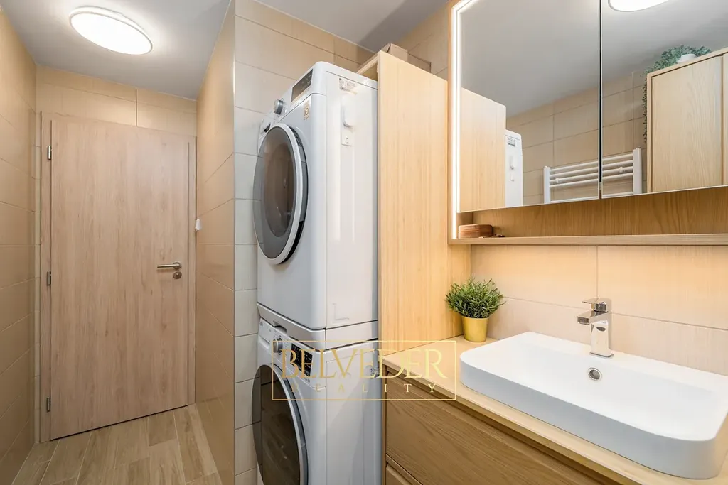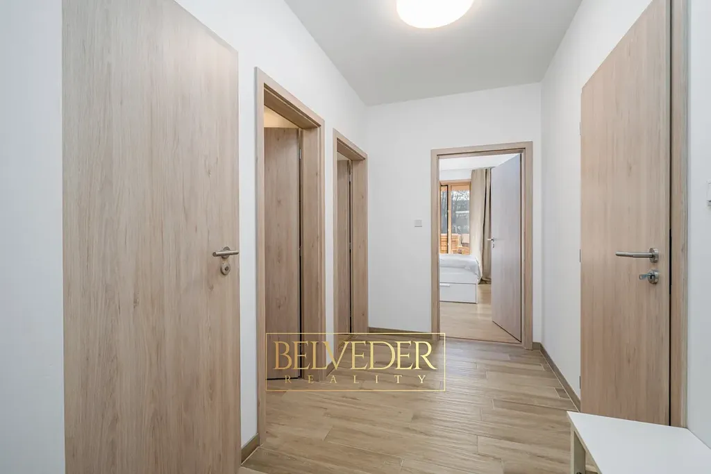 Byt je vybaven podlahovým topením a kuchyní na míru od firmy Oresi. Po domluvě může v bytě zůstat část nábytku.