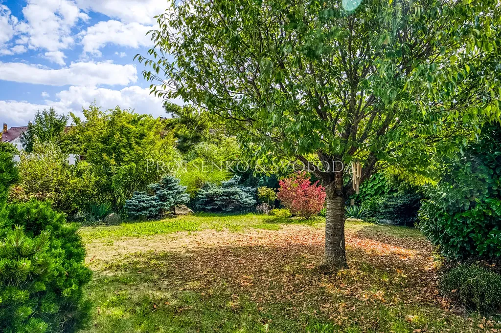 Zahrada o velikosti 800 m² byla navržena architektem s důrazem na estetiku i funkčnost. Poskytuje dostatek soukromí, relaxačních zón a je plně připravena na pohodlné užívání.