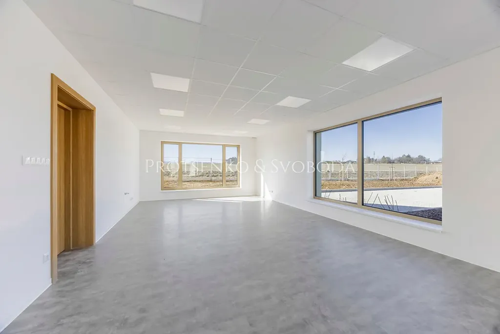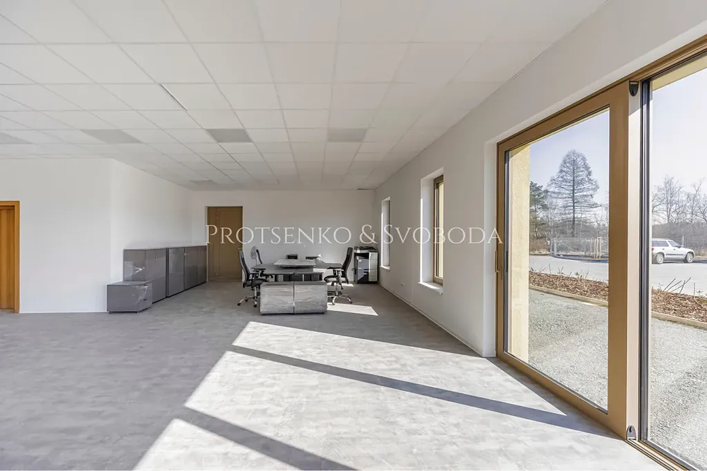 Společnost Protsenko & Svoboda v zastoupení majitele nabízí k pronájmu moderní areál o celkové podlahové ploše 937 m² se zahradou a parkovací plochou. Skvělá poloha v blízkosti dálnice D1, pouhých 30 km od Brna, zajišťuje snadnou dostupnost pro zaměstnance i klienty.